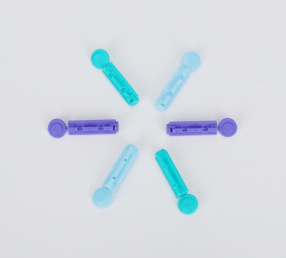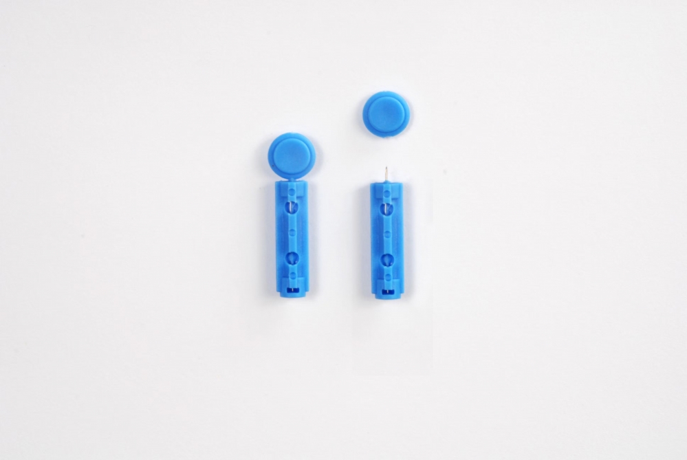 The product is used to obtain capillary blood samples from fingertip in a hospital or at home. The lancet is assembled with lancing device, once the lancing device is launched, the needle of lancet can prick the skin.